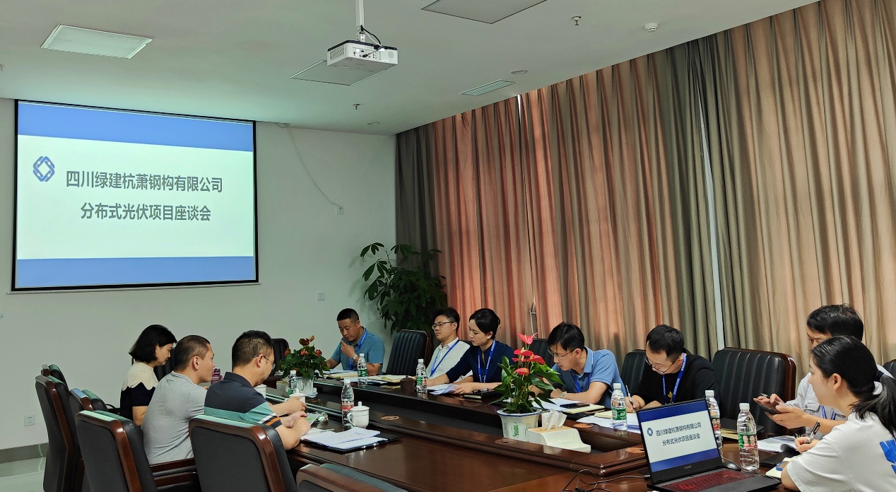 2022年6月30日上午,四川綠建杭蕭鋼構(gòu)有限公司(以下簡稱:綠建杭蕭)四川省能源投資集團(tuán)有限責(zé)任公司相關(guān)負(fù)責(zé)人共同召開分布式光伏項(xiàng)目座談會。綠建杭蕭總經(jīng)理古敏同志攜領(lǐng)導(dǎo)班子與相關(guān)部門負(fù)責(zé)人參加會議。