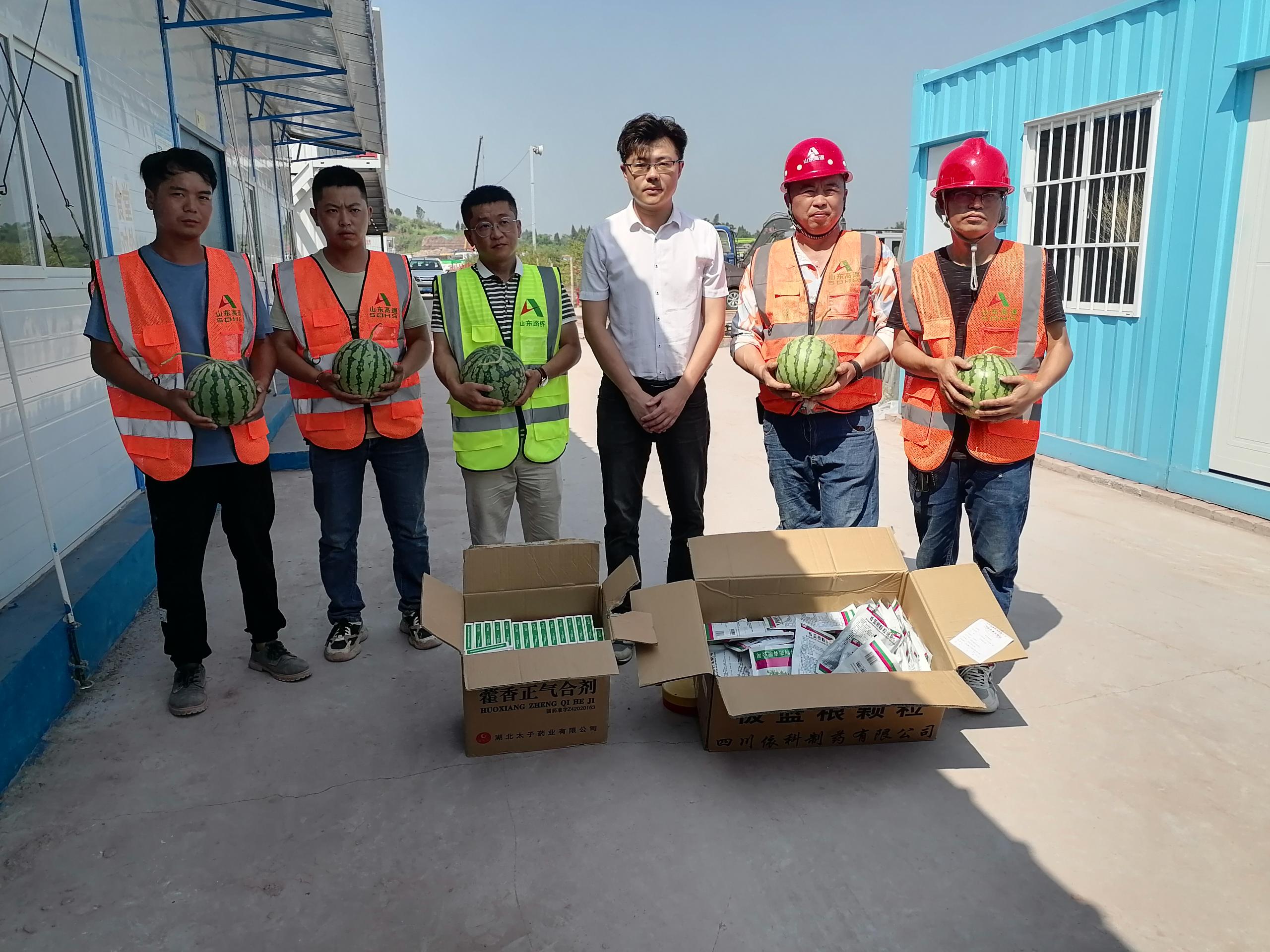 七月的內(nèi)江,烈日灼灼,酷暑難耐,為深入貫徹“以人為本”的企業(yè)發(fā)展理念,做好高溫天氣防暑降溫工作2022年78日,受綠建杭蕭總經(jīng)理古敏同志委托,綠建杭蕭工會(huì)主席、工程管理副總經(jīng)理周士棠同志組織開(kāi)展“夏送清涼”活動(dòng),帶隊(duì)前往四個(gè)項(xiàng)目施工地及生產(chǎn)一線現(xiàn)場(chǎng)慰問(wèn)職工,為戰(zhàn)斗在高溫工作崗位上員工送去西瓜、藿香正氣液等清涼降溫的防暑物資。